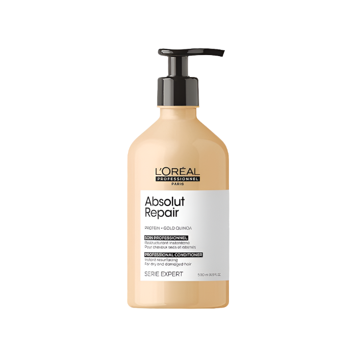 Infused with GOLD QUINOA + PROTEIN, the professional formula of Absolut Repair Conditioner is the perfect treatment to immediately restructure damaged hair. Its creamy formula nourishes the fiber while leaving it light to the touch.