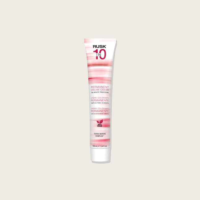 Rusk's Ruskin 10 provides a permanent color that processes in only 10 minutes, ensuring 100% gray coverage without sacrificing performance.