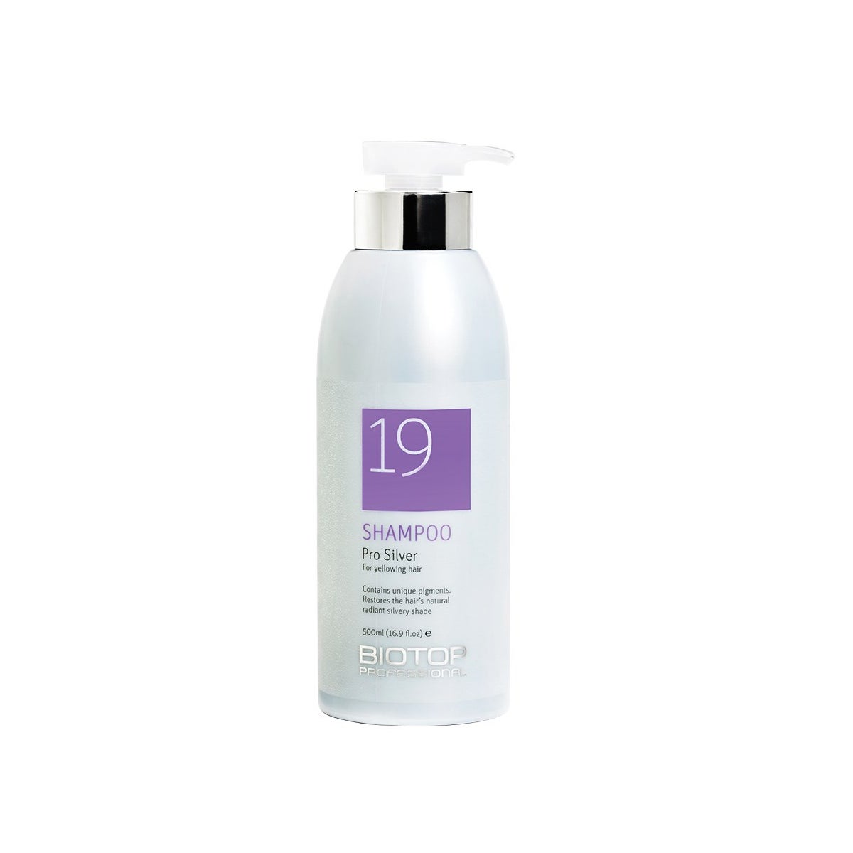 19 Pro Silver Shampoo restores radiant silver, white, gray and platinum blonde tones, as it neutralizes unwanted yellow and brassy tones. It’s enriched with Green Tea Leaf Extract to hydrate the scalp and help support healthy hair growth. High in Vitamin E and Abyssinian Oil, it provides intense hydration and helps reduce frizz, leaving hair smooth with beautiful shine.
